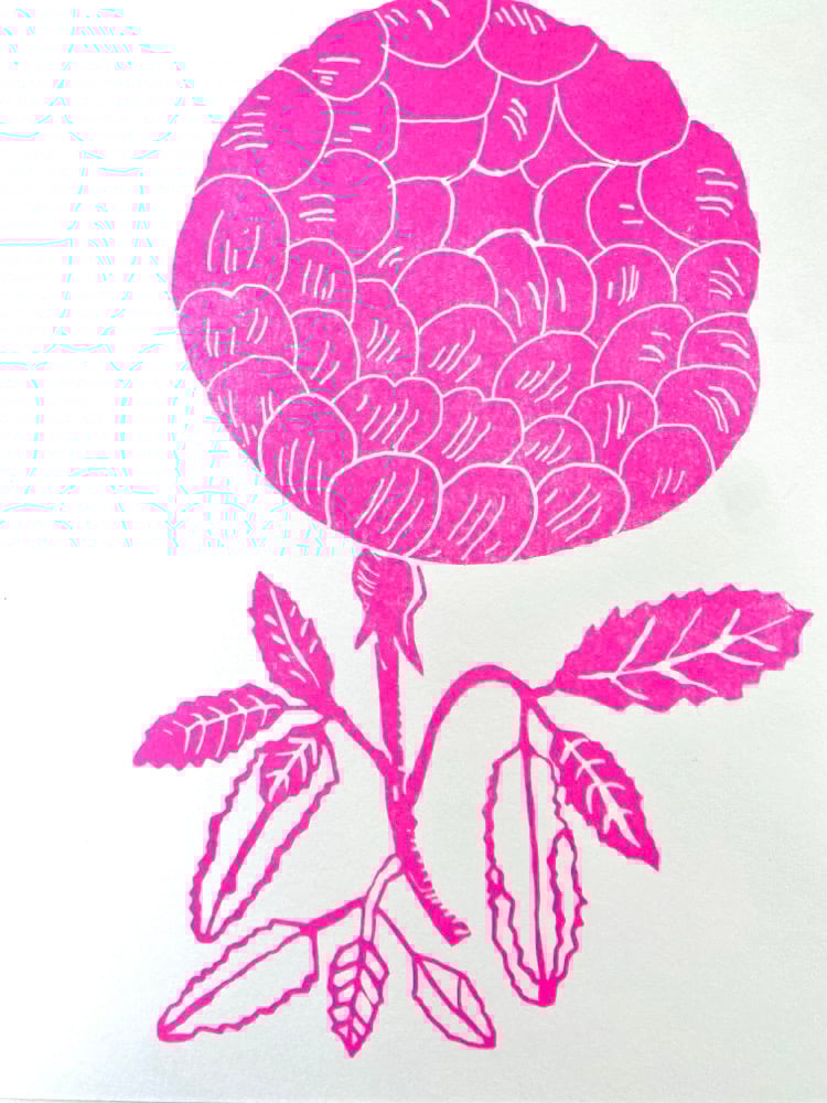 Hot pink rose printed on heavy artist grade paper with vellum envelope.